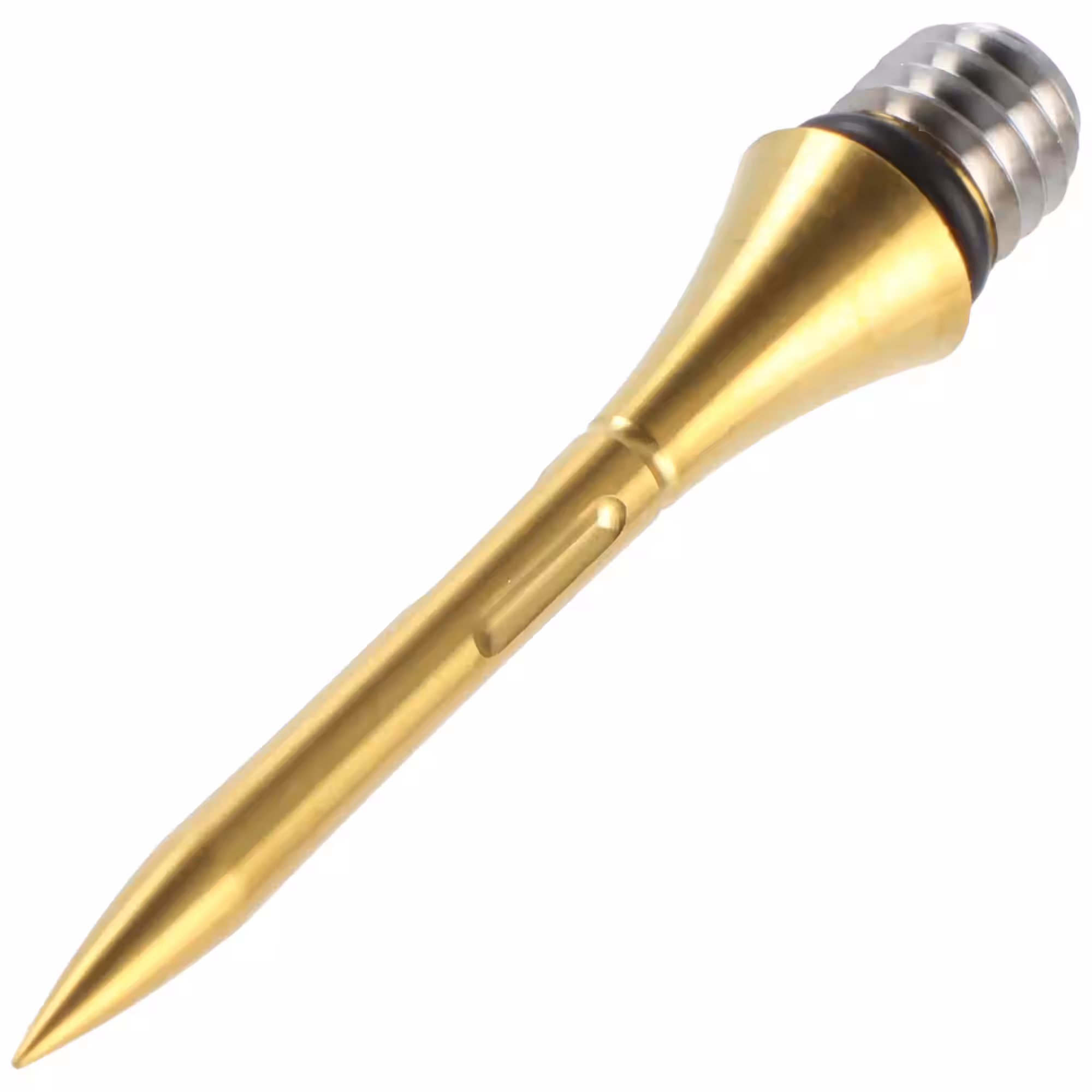 Caliburn Bamboo Converter gold Point, 28mm kurz und kompakt, unsere golde Steeldart Wechselspitze stellt sich vor ✅ 28mm Wechselspitze gold 2BA präzise gefertigt ! ✅ macht im Handumdrehen aus Deinem Softdart einen Steeldart ! ✅ perfekter Halt dank dem O-Ring ✅ einfach statt der Softdartspitze einschrauben ! Conversion Points gold – die 28mm Caliburn SP-Umrüstspitze, entwickelt, um Deine Softdarts mit verschiedener Wechselspitze schnell in Stahlspitzen umzuwandeln, nutzt die Caliburn-Technologie zum festeren einschrauben der Steeldartspitze in den Softdartbarrel mit 2BA Gewinde. Steeldart Wechselspitze für Softdarts, einfach wie die 2BA Softdartspitze einschrauben! Die Caliburn Spitzen Point-Technologie d.h. Du kannst diese Steeldart Wechselspitze mit dem Gummiring einfach auf Deinem Softdartbarrel festschrauben und dann zusäztlich Steeldart statt Softdart spielen. ✅ Caliburn Bamboo Conversion Points gold, 28mm Unsere Steeldart Wechselspitzen im 2BA Gewinde in den 3 gängigen Dartspitzen Längen achtundzwanzig, dreißig und zweiunddreißig Millimeter. Hohe Verarbeitungsqualität und saubere Verpackung. Das hochwertige, robuste Materie wird perfekt durch das Design in Szene gestellt, für den optimalen halt im Dart Barrel ist gleich ein Gummiring in der Lieferung enthalten. Caliburn Bamboo Smooth Conversion Points – Zum Einschrauben – Soft Tip zu Steel Tip – 28 mm – Gold. Erhältlich in drei Längen und zahlreichen Farben, setzen diese Bamboo Conversion Points ein Statement für Dein neues Dart-Setup. Mit diesen einzigartig designten Spitzen verwandelst Du Deinen Softdart ganz einfach in einen Steeldart. Verwenden den mitgelieferten Gummi-O-Ring für einen festen Halt zwischen Dartbarrel und Schraubspitze. Jede Packung enthält 3 Spitzen mit 3 Gummis. Technische Daten für die Caliburn Bamboo Wechselspitzen Material: Stärke: robust Farbe: gold / gold System: 2BA mit Haltegummi Gewicht: Gramm Abmessungen: ca. 28mm Caliburn Conversion Points Bamboo,