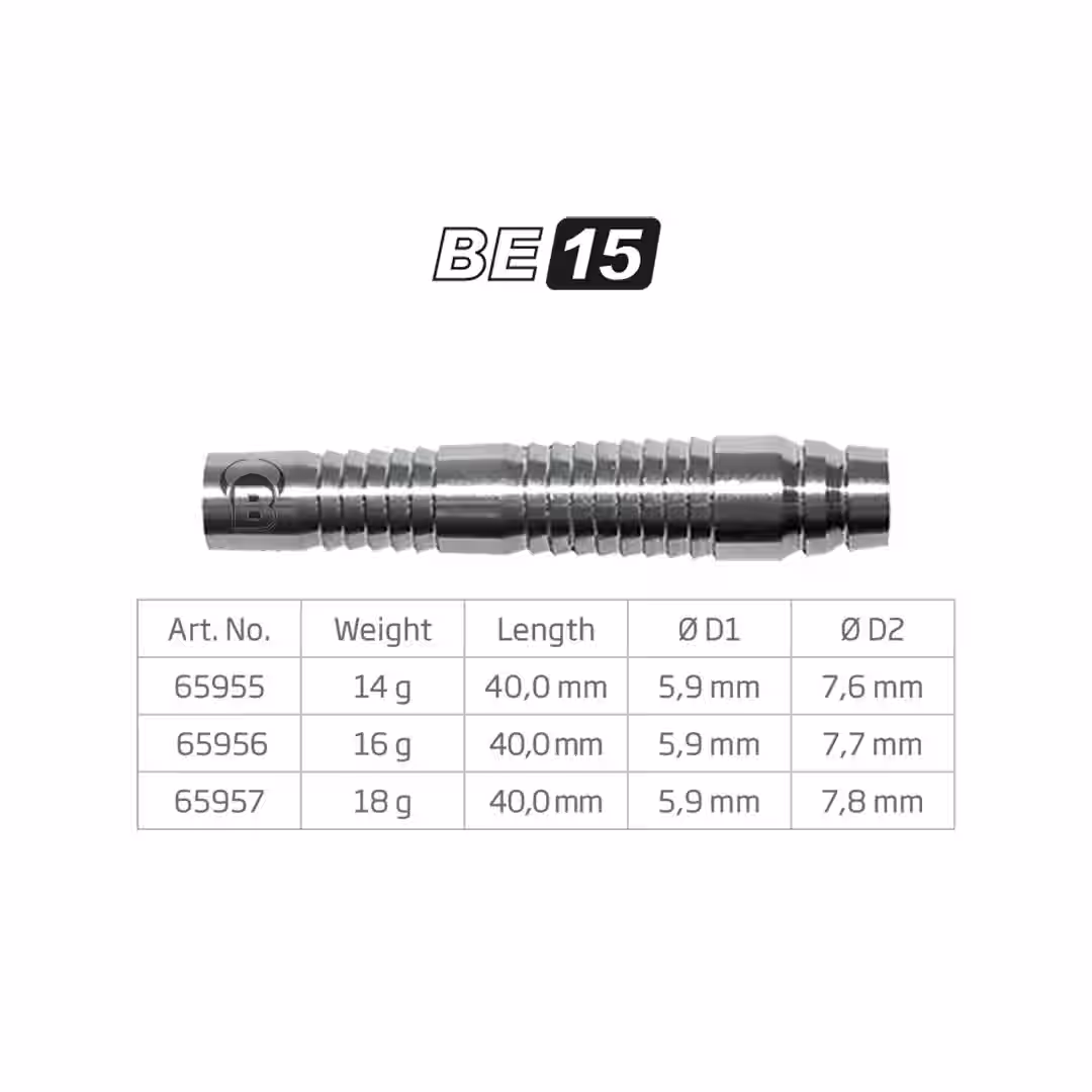 BULL`S BE-15 Soft Tip Barrels 80 % Tungsten 16g und 18g BULL`S Soft Tip Barrels aus 80 % Tungsten mit 2BA Gewinde. Eine fantastische Auswahl an Gewichten und Griffvarianten, steht in dieser Serie zur Verf?gung. Barrelma?e siehe Foto