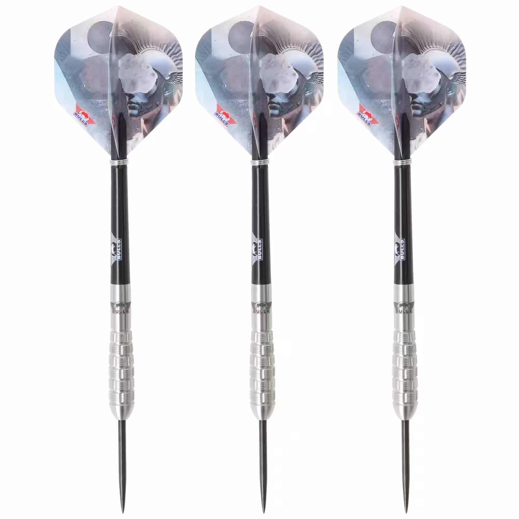 Bulls Mercurius Lia Steeldart, 90% Tungsten kurz und kompakt, die Mercurius Lia Steeldarts stellen sich vor ✅ Mercurius LIA Steeldarts von Bull’s! ✅ bitte das gewünschte Gewicht bei den Varianten auswählen! ✅ erhältlich in den folgenden Gewichten: 16 Gramm, 18 Gramm, 20 Gramm ✅ 90% Tungsten ✅ Ringgrip, leicht torpedoförmiges Barrel ✅ hochwertige Verarbeitung, gewohnt hohe Qualität von Bulls! Wenn Du auf der Suche nach einem hochwertigen Steeldart bist, der Dir nicht nur eine exzellente Performance bietet, sondern auch durch sein Design und seine Verarbeitung überzeugt, dann wirst Du den Bulls Mercurius Lia lieben. Dieses Dartmodell wurde mit dem Anspruch entwickelt, ambitionierten Spielern ein perfektes Werkzeug an die Hand zu geben – egal, ob Du Dich gerade auf das nächste Turnier vorbereitest oder einfach mit Freunden Deine Skills verbessern willst. Präzision trifft auf Design – 90 % Tungsten für echte Qualität Der Bulls Mercurius Lia besteht zu 90 % aus hochwertigem Tungsten (Wolfram). Was das für Dich bedeutet? Ganz einfach: Ein schlankes Barrel bei gleichzeitig optimalem Gewicht. So kannst Du Deine Darts noch enger gruppieren – ein entscheidender Vorteil, wenn es darauf ankommt, Triple-Felder oder das Bullseye zuverlässig zu treffen. Durch das hohe Wolframverhältnis ist das Barrel außerdem besonders langlebig und widerstandsfähig – ein Dart, der mit Dir zusammen wächst und über lange Zeit hinweg seine Form und Qualität behält. Bulls Mercurius LIA Steeldart – Deine neue Geheimwaffe am Dartboard Wir wissen, dass nicht jeder Dartspieler gleich ist. Deshalb kannst Du beim Bulls Mercurius Lia zwischen drei verschiedenen Gewichtsklassen wählen: 16 Gramm, 18 Gramm und 20 Gramm. So findest Du garantiert das Modell, das am besten zu Deinem Wurfstil passt. Bevorzugst Du schnelle, leichte Darts für einen flüssigen Wurf? Dann ist die 16-Gramm-Version ideal für Dich. Du brauchst mehr Kontrolle und ein etwas schwereres Feeling? Dann greif zu 18 oder 20 Gramm. Bitte wähle Dein gewünschtes Gewicht bei der Variante aus, bevor Du bestellst! Torpedoförmiges Barrel – für Präzision aus jeder Wurfposition Was den Mercurius Lia besonders macht, ist sein leicht torpedoförmiges Barrel-Design. Diese Form bietet Dir eine ausgewogene Balance und liegt besonders gut in der Hand – ideal für Spieler, die vorne oder in der Mitte greifen. Die leichte Verjüngung sorgt dafür, dass Du den Dart präzise führen kannst, ohne an Stabilität oder Kontrolle zu verlieren. Egal ob Du ein kraftvoller Werfer bist oder eher auf Technik setzt – dieser Dart unterstützt Deinen individuellen Stil optimal. Ringgrip mit vertikalen Rillen – maximaler Grip, minimaler Widerstand Der Griffbereich des Mercurius Lia ist mit einem feinen Ringgrip und vertikalen Rillen versehen. Diese Kombination sorgt für eine besonders angenehme Haptik und gibt Dir beim Abwurf das sichere Gefühl, das Du brauchst, um konstant zu spielen. Die Rillenstruktur verhindert ein Abrutschen und gibt Dir auch nach vielen Legs noch die volle Kontrolle – ohne dabei zu aggressiv zu wirken oder an den Fingern zu scheuern. Typisch Bulls – Qualität, die Du fühlst Wenn Du schon einmal mit Darts von Bulls gespielt hast, weißt Du, was Dich erwartet: präzise Verarbeitung, perfekte Balance und langlebige Materialien. Der Mercurius Lia reiht sich nahtlos in diese Tradition ein. Jeder Dart ist mit höchster Sorgfalt gefertigt und wird Deinen Erwartungen mehr als gerecht werden. Du bekommst mit diesem Modell ein echtes Premiumprodukt – zu einem Preis, der sich mehr als lohnt. Alles dabei – für einen starken Auftritt Natürlich kommt der Bulls Mercurius Lia nicht allein. Im Set enthalten sind: Bulls Schäfte in stilvollem Schwarz – leicht, stabil und perfekt ausbalanciert Bulls Mercurius Flights – passend zum Dartdesign und mit optimaler Flugeigenschaft Ein fertig montierter Dart, der sofort spielbereit ist – einfach auspacken und loslegen Ein Teil der Mercurius-Serie Vielleicht kennst Du bereits die Mercurius AVA – die “Schwesterreihe” des Lia. Beide Serien gehören zur gleichen Produktfamilie, unterscheiden sich jedoch in der Barrelform. Während der Lia ein torpedoförmiges Barrel besitzt, ist der AVA eher schlank und gerade geschnitten. Wenn Du also ein Faible für spezielle Formen hast oder gerne zwischen unterschiedlichen Setups wechselst, lohnt sich auch ein Blick auf die andere Mercurius-Variante. Dein Stil, Deine Farbe Der Bulls Mercurius Lia kommt in einem klassischen, edlen Silberfinish – zeitlos, stilvoll und absolut sportlich. Die Farbkombination mit schwarzen Schäften und passenden Flights sorgt für ein stimmiges Gesamtbild und einen starken Auftritt auf jedem Turnier oder Spieleabend. Fazit Der Bulls Mercurius Lia ist ein Dart für echte Kenner und ambitionierte Spieler, die keine Kompromisse eingehen. Durch die Kombination aus hochwertigem Tungsten, einem durchdachten Gripdesign und einer perfekt ausgewogenen Barrelform bekommst Du hier ein Werkzeug, das Dich nicht im Stich lässt – ganz egal, ob Du gerade erst startest oder schon seit Jahren an Deiner Perfektion feilst. Mach jetzt den nächsten Schritt und finde Dein perfektes Gewicht – 16 g, 18 g oder 20 g, ganz nach Deinem Stil. Wähle Deine Variante aus und sichere Dir den Bulls Mercurius Lia – der nächste 180er wartet schon auf Dich! Gewichte und Abmessungen Gewicht Länge Durchmesser 16 Gramm: 40mm 7,5mm 18 Gramm: 40mm 7,5mm 20 Gramm: 40mm 7,5mm Technische Daten Art: Steeltip Material: 90% Tungsten Farbe: Silber