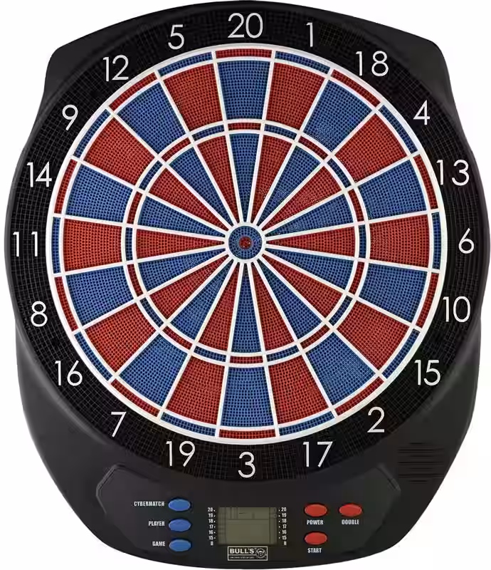 BULL`S Scorpy Elektronik Dartboard Einsteiger Dartboard mit LCD Anzeige, original Turnier Gr??e mit Zweiloch Segmenten und original Turnier Gr??e beim Bull`s Eye, f?r 1-4 Spieler / 2-4 Teams mit automatischer Punktewertung, Sound Effect, Double-In/Double-Out Funktion, und Cyber-Match Funktion bis Level 5. 21 Spiele mit 65 Variationen. Zubeh?r: 6 Darts, 12 Soft Tips, Netzteil und mehrsprachige Bedienungsanleitung. Ma?e: ca. 51 x 43 cm. WEEE-Reg.-Nr.DE 34028166