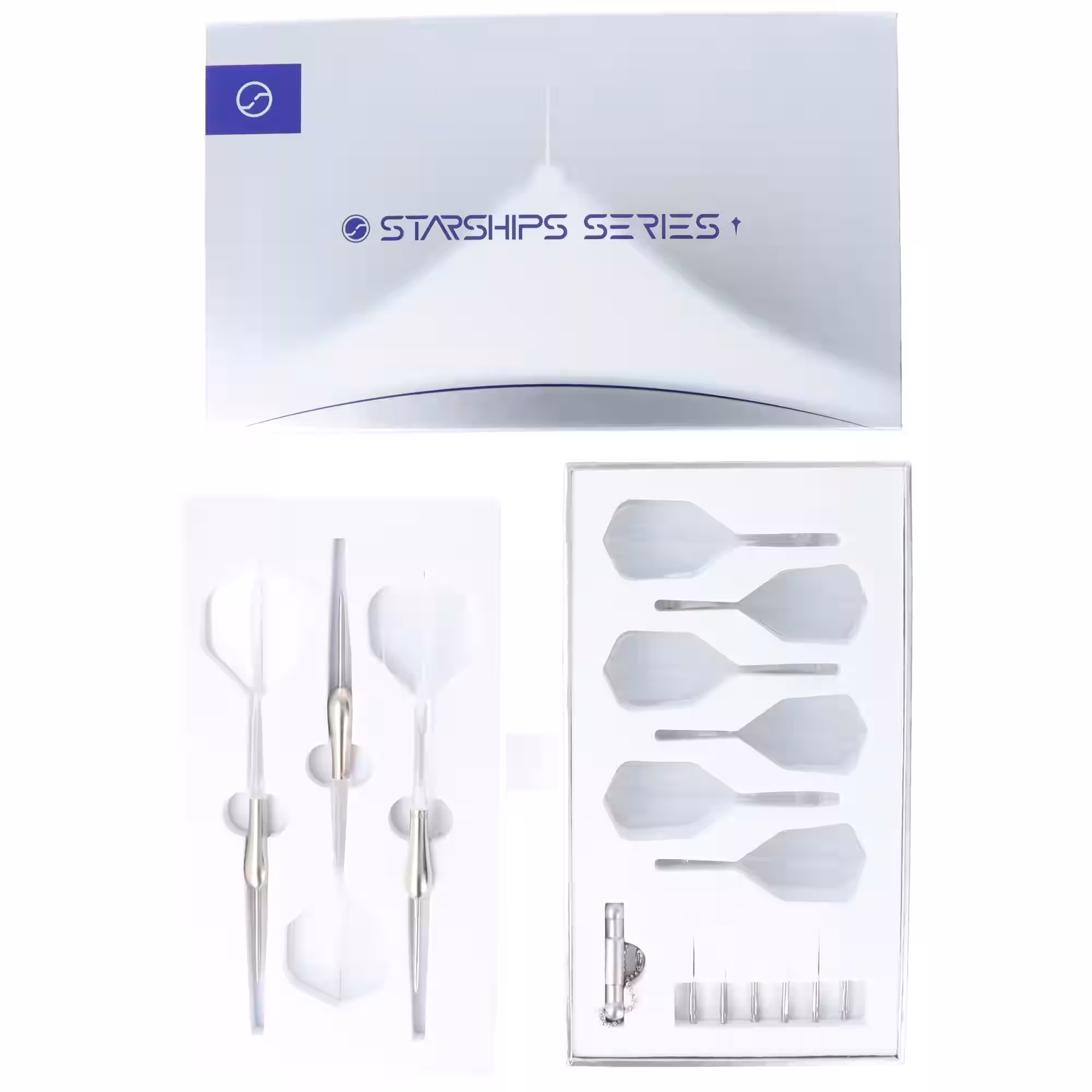 Caliburn Starships Steeldart, waterdrop Premium Box, 95% Tungsten kurz und kompakt, die Caliburn Starships Steeldarts stellen sich vor ✅ Caliburn Starships waterdrop Steeldarts ✅ Lieferung in einer hochwertigen Premium Verpackung ✅ absolut besondere Darts im Weltraum Design ✅ hochwertige Verarbeitung, aufwendig gestaltete Verpackung! ✅ zusätzlich 6 Caliburn SUP Flights, 6 Wechselspitzen und ein Wechseltool enthalten! Die Caliburn Starships Steeldart aus der waterdrop Premium Box sind nicht nur Darts, sondern ein Statement für Qualität, Design und Präzision. Diese exklusiven Darts wurden mit 95% Tungsten gefertigt und garantieren somit eine außergewöhnliche Langlebigkeit und Stabilität. Ob Hobbyspieler oder ambitionierter Profi – die Starships Darts sind ein absolutes Must-have für jeden, der Wert auf hochwertige Verarbeitung und ein außergewöhnliches Spielerlebnis legt. Design und Verarbeitung – Darts, die ins Auge stechen Das Highlight der Caliburn Starships ist ihr einzigartiges Weltraumdesign, das an die unendlichen Weiten des Alls erinnert. Die Darts sind mit futuristischen Gravuren versehen, die nicht nur optisch beeindrucken, sondern auch eine exzellente Griffigkeit bieten. Dank der präzisen Verarbeitung des 95%-igen Tungsten-Materials liegen die Barrels perfekt in der Hand und ermöglichen einen stabilen Wurf. Das Design wurde bis ins kleinste Detail durchdacht, sodass es nicht nur ästhetisch ansprechend, sondern auch funktional ist. Die Darts sind mit Caliburn Spitzen und -Schäften ausgestattet, die das beliebte Wechselsystem nutzen. Dieses System ermöglicht einen schnellen Austausch der Spitzen und Flights, ohne dass zusätzliche Werkzeuge benötigt werden. Die Gewindegröße 2ba sorgt dabei für einen festen und sicheren Sitz der Komponenten. Caliburn Starships Steeldarts mit Caliburn SUP Dart Flights – Die Premium-Darts im Weltraumdesign Die Lieferung der Caliburn Starships erfolgt in einer hochwertigen Premium-Verpackung, die an eine elegante Schmuckschatulle erinnert. Die Verpackung verfügt über eine Schublade, in der das gesamte Zubehör praktisch und sicher verstaut ist. Schon beim Öffnen wird deutlich, dass es sich hierbei um ein echtes Luxusprodukt handelt. Die aufwendig gestaltete Verpackung macht diese Darts auch zu einem perfekten Geschenk für Dart-Liebhaber. Vielfältiges Zubehör für grenzenlosen Spielspaß Die Caliburn Starships waterdrop Premium Box enthält alles, was das Dart-Herz höherschlagen lässt. Neben den drei hochwertigen Darts sind folgende Extras enthalten: 6 Caliburn Flights in futuristischem Design, die für eine optimale Flugstabilität sorgen. 6 Wechselspitzen, die je nach Spieluntergrund ausgetauscht werden können. Ein Wechseltool, mit dem sich Anpassungen an den Darts schnell und unkompliziert vornehmen lassen. Zusätzlich beinhaltet die Box die innovativen Caliburn SUP Flights. Diese bestehen aus einem Stück, das Schaft und Flight kombiniert, wodurch eine verbesserte Haltbarkeit und ein gleichbleibendes Flugverhalten gewährleistet werden. Caliburn System – Innovation für Perfektion Das System von Caliburn ist ein echtes Highlight dieser Darts. Es erlaubt nicht nur einen schnellen und einfachen Wechsel der Spitzen und Flights, sondern sorgt auch für eine perfekte Balance und Stabilität während des Spiels. Mit diesem System gehören lose oder schlecht sitzende Komponenten der Vergangenheit an. Spieler können sich voll und ganz auf ihr Spiel konzentrieren und profitieren von einer stets optimalen Performance. Die Kombination aus Caliburn Spitzen, -Schäften und -Flights macht die Starships Darts zu einer wahren Innovation im Dart-Sport. Ob bei intensiven Trainingseinheiten oder spannenden Turnieren – diese Darts lassen Sie nicht im Stich. Warum Caliburn Starships waterdrop Steeldart? Die Starships Darts aus der waterdrop Premium Box überzeugen durch eine Vielzahl an Vorteilen: Einzigartiges Weltraumdesign: Nicht nur funktional, sondern auch optisch ein absoluter Hingucker. Hochwertige Materialien: 95% Tungsten sorgen für eine außergewöhnliche Langlebigkeit und Präzision. Vielfältiges Zubehör: Mit zusätzlichen Flights, Wechselspitzen und einem Wechseltool sind Sie perfekt ausgestattet. Innovatives EVO-System: Schnelle Anpassungen und optimale Performance bei jedem Spiel. Exklusive Verpackung: Die edle Box macht die Darts zu einem idealen Geschenk für Dart-Fans. Ein Dart-Erlebnis der Extraklasse Die Caliburn Starships Steeldart sind mehr als nur ein Spielgerät – sie sind ein Erlebnis. Die Kombination aus hochwertiger Verarbeitung, durchdachtem Design und innovativer Technik hebt sie deutlich von anderen Darts auf dem Markt ab. Egal, ob Sie bereits ein erfahrener Spieler sind oder gerade erst mit dem Dartsport beginnen, diese Darts werden Sie begeistern. Dank des umfangreichen Zubehörs und des durchdachten Systems sind die Starships Darts flexibel einsetzbar und passen sich Ihren individuellen Bedürfnissen an. Die hochwertige Premium-Verpackung sorgt dafür, dass die Darts sicher verstaut und stilvoll präsentiert werden können. Fazit Mit den Caliburn Starships Steeldarts aus der waterdrop Premium Box investieren Sie in ein Produkt, das höchste Ansprüche an Qualität, Design und Funktionalität erfüllt. Diese Darts bieten nicht nur ein außergewöhnliches Spielerlebnis, sondern setzen auch optisch neue Maßstäbe. Die hochwertige Verpackung, das innovative Zubehör und die perfekte Verarbeitung machen sie zu einem unverzichtbaren Begleiter für jeden Dartspieler. Erleben Sie die Faszination der Starships Darts und heben Sie Ihr Spiel auf ein neues Level – denn mit diesen Darts greifen Sie nach den Sternen! Technische Daten Gewinde: 2BA Gewicht: 21 Gramm Material: 95% Tungsten Länge: 30mm Durchmesser: 5,7mm, max. 9,5mm Softdart: aufgrund des geringen Barrel Gewicht kannst Du hier die Caliburn Softdartspitzen statt den Caliburn Steeldartspitzen verwenden und dann auch Softdart mit dies