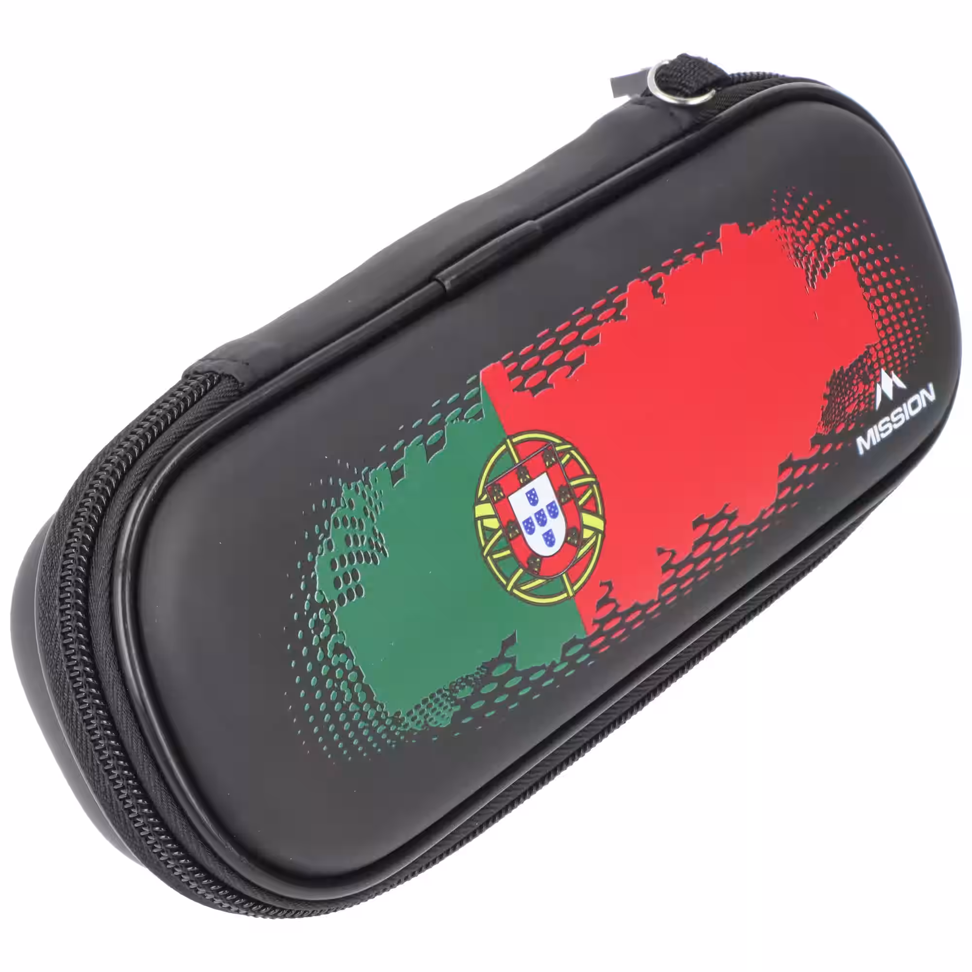 Portugal Darttasche, Dartbag schwarz, für 1-3 Dartpfeile kurz und kompakt, unsere kleine Portugal EVA Darttasche sich vor ✅ Dart Tasche schwarz für 3 komplette Dartpfeile! ✅ im Portugal Design, schwarz ✅ stabiles EVA Material für die sichere Aufbewahrung ! ✅ pflegeleicht, Abmessungen ca. 215 x 90 x 55mm ! ✅ Designed in UK, Made in China! ✅ hochwertige Verarbeitung, gute Verpackung! Die Darts Wallet schwarz im Portugal Design ist eine erstklassige Darttasche, die speziell für Dartliebhaber entwickelt wurde. Diese Tasche besteht aus einem robusten EVA-Material, das auch als PU-Schaum bezeichnet wird. Dieses Material ist äußerst strapazierfähig und hilft dabei, die Steifigkeit der Tasche aufrechtzuerhalten. Es schützt Deine Dartpfeiles und das Zubehör im Inneren der Tasche vor Beschädigungen und Stößen. Deine Darts werden bespielt gelagert d.h. sie bleiben zusammengebaut und sind ready 2 use für Deine nächsten Dartspiele. Eine der herausragenden Merkmale dieser Tasche ist die feine, schwarze Samtschicht im Inneren der Tasche. Diese Schicht fühlt sich weich an und ist kratzfest, was bedeutet, dass Deine Darts und das Zubehör sicher und geschützt aufbewahrt werden können, ohne dass Du zerkratzt oder beschädigt werden. Die Darts selbst werden vollständig zusammengebaut mit einem Gummiband gehalten, um eine Bewegung im Inneren zu verhindern. Dies ist äußerst wichtig, da es sicherstellt, dass Deine Darts nicht so leicht verrutschen oder beschädigt werden, wenn Du die Tasche bewegen oder transportieren. Ein weiteres herausragendes Merkmal dieser Tasche ist Deine Breite und Dicke. Die Tasche ist groß genug, um sicherzustellen, dass die wertvollen Dart Flights nicht zerdrückt oder deformiert werden, wenn Du die Tasche bewegen oder transportieren. Dies ist äußerst wichtig, da Flights eine wichtige Rolle beim Spielen von Dart spielen und Deine Integrität für eine korrekte Flugbahn der Dartpfeile sorgt. In der linken Innenseite der Tasche befinden sich eine Reißverschlusstasche für Ersatzzubehör, Kleingeld etc. Diese Tasche ist äußerst praktisch und ermöglicht es Dir, Deine Ersatzteile und Zubehörteile sicher und geschützt aufzubewahren. Diese Tasche ist breit und dick genug, um sicherzustellen, dass Du 1-3 komplette Dartpfeile und Zubehör transportieren kannst. Dies macht es zu einer idealen Tasche für Dartspieler, die ihre Darts und Zubehörteile sicher und geschützt aufbewahren möchten. Zusätzlich zum Reißverschluss ist auch noch ein kleiner Metallring für einen Karabiner oder sonstige Befestigung, Sicherung enthalten. Dies ist äußerst praktisch und ermöglicht es Dir, die Tasche sicher an Deinem Rucksack oder Deiner Gürtelschlaufe zu befestigen, um Deine Darts noch einfacher zu transportieren. Zusammenfassend lässt sich sagen, dass die Darts Wallet schwarz eine erstklassige Tasche für Dartspieler ist. Du ist äußerst strapazierfähig und robust, und schützt Deine Darts und Zubehörteile vor Beschädigungen und Stößen. Die Tasche ist breit und dick genug, um 1-3 komplette Dartpfeile und Zubehör zu transportieren, und verfügt über eine kleine Reißverschlusstasche für Dein Ersatzzubehör. Schwarze Portugal Darttasche für 3 komplette Pfeile, für Steeldart und Softdart geeignet Technische Daten für die Darttasche Ausführung: Darttasche mit Reisverschluß Art: für 1-3 komplett Dartpfeile Farbe: schwarz / black System: Darttasche EVA Gewicht: ca. 144 Gramm Abmessungen: ca. 215 x 90 x 55mm Portugal Dart Tasche (amtl. República Portuguesa)