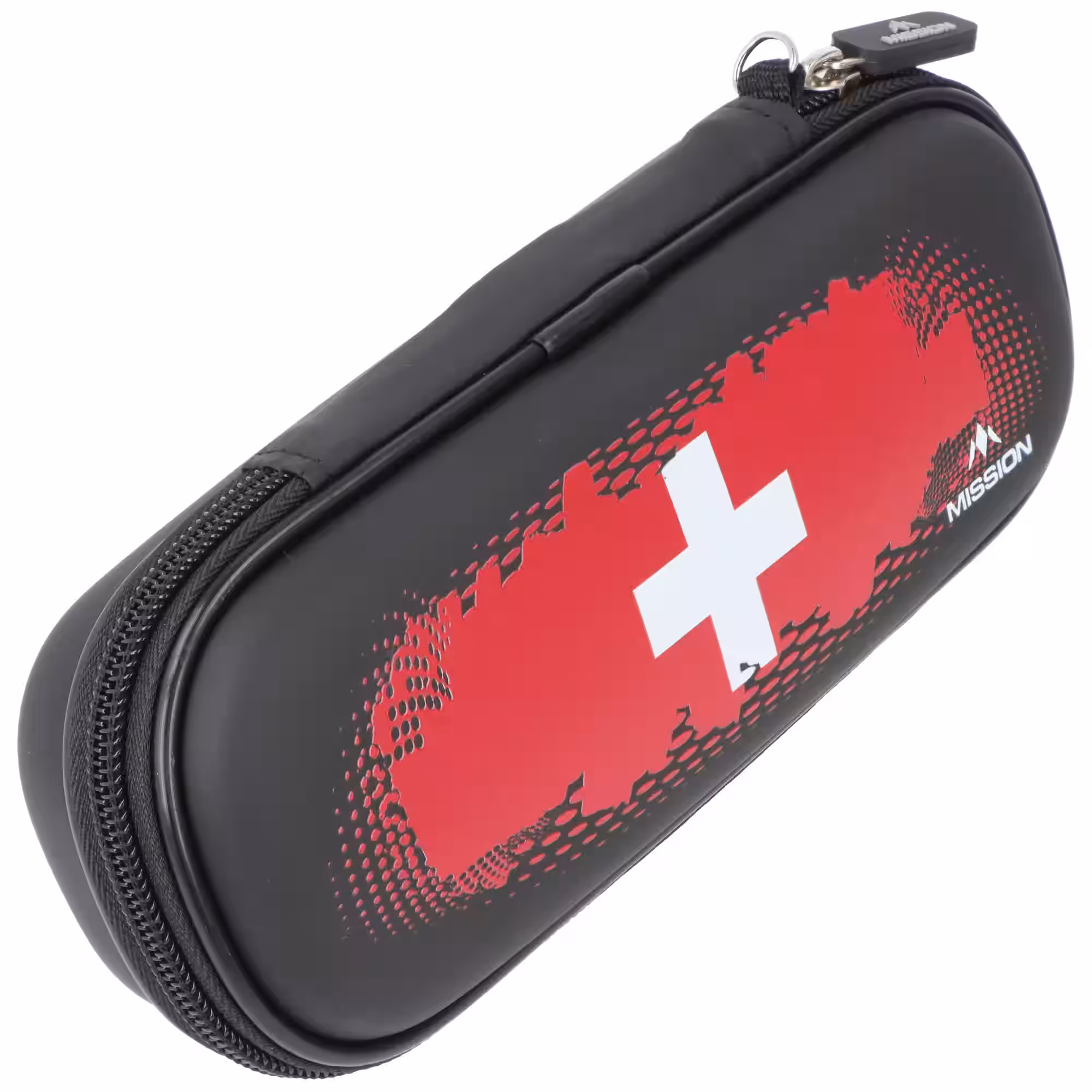 Schweiz Darttasche, Dartbag schwarz, für 1-3 Dartpfeile kurz und kompakt, unsere kleine Schweiz EVA Darttasche sich vor ✅ Dart Schwiz Tasche schwarz für 3 komplette Dartpfeile! ✅ Dartbag im switzerland Design, schwarz ✅ stabiles EVA Material für die sichere Aufbewahrung ! ✅ pflegeleicht, Abmessungen ca. 215 x 90 x 55mm ! ✅ Designed in UK, Made in China! ✅ hochwertige Verarbeitung, gute Verpackung! Die Darts Wallet schwarz im Schweiz Design ist eine erstklassige Darttasche, die speziell für Dartliebhaber entwickelt wurde. Diese Tasche besteht aus einem robusten EVA-Material, das auch als PU-Schaum bezeichnet wird. Dieses Material ist äußerst strapazierfähig und hilft dabei, die Steifigkeit der Tasche aufrechtzuerhalten. Es schützt Deine Dartpfeiles und das Zubehör im Inneren der Tasche vor Beschädigungen und Stößen. Deine Darts werden bespielt gelagert d.h. sie bleiben zusammengebaut und sind ready 2 use für Deine nächsten Dartspiele. Eine der herausragenden Merkmale dieser Tasche ist die feine, schwarze Samtschicht im Inneren der Tasche. Diese Schicht fühlt sich weich an und ist kratzfest, was bedeutet, dass Deine Darts und das Zubehör sicher und geschützt aufbewahrt werden können, ohne dass Du zerkratzt oder beschädigt werden. Die Darts selbst werden vollständig zusammengebaut mit einem Gummiband gehalten, um eine Bewegung im Inneren zu verhindern. Dies ist äußerst wichtig, da es sicherstellt, dass Deine Darts nicht so leicht verrutschen oder beschädigt werden, wenn Du die Tasche bewegen oder transportieren. Ein weiteres herausragendes Merkmal dieser Tasche ist Deine Breite und Dicke. Die Tasche ist groß genug, um sicherzustellen, dass die wertvollen Dart Flights nicht zerdrückt oder deformiert werden, wenn Du die Tasche bewegen oder transportieren. Dies ist äußerst wichtig, da Flights eine wichtige Rolle beim Spielen von Dart spielen und Deine Integrität für eine korrekte Flugbahn der Dartpfeile sorgt. In der linken Innenseite der Tasche befinden sich eine Reißverschlusstasche für Ersatzzubehör, Kleingeld etc. Diese Tasche ist äußerst praktisch und ermöglicht es Dir, Deine Ersatzteile und Zubehörteile sicher und geschützt aufzubewahren. Diese Tasche ist breit und dick genug, um sicherzustellen, dass Du 1-3 komplette Dartpfeile und Zubehör transportieren kannst. Dies macht es zu einer idealen Tasche für Dartspieler, die ihre Darts und Zubehörteile sicher und geschützt aufbewahren möchten. Zusätzlich zum Reißverschluss ist auch noch ein kleiner Metallring für einen Karabiner oder sonstige Befestigung, Sicherung enthalten. Dies ist äußerst praktisch und ermöglicht es Dir, die Tasche sicher an Deinem Rucksack oder Deiner Gürtelschlaufe zu befestigen, um Deine Darts noch einfacher zu transportieren. Zusammenfassend lässt sich sagen, dass die Darts Wallet schwarz eine erstklassige Tasche für Dartspieler ist. Du ist äußerst strapazierfähig und robust, und schützt Deine Darts und Zubehörteile vor Beschädigungen und Stößen. Die Tasche ist breit und dick genug, um 1-3 komplette Dartpfeile und Zubehör zu transportieren, und verfügt über eine kleine Reißverschlusstasche für Dein Ersatzzubehör. Schwarze Schweiz, switzerland Darttasche für 3 komplette Pfeile, für Steeldart und Softdart geeignet Technische Daten für die Darttasche Ausführung: Darttasche mit Reisverschluß Art: für 1-3 komplett Dartpfeile Farbe: schwarz / black System: Darttasche EVA Gewicht: ca. 144 Gramm Abmessungen: ca. 215 x 90 x 55mm Schweiz Dart Tasche – switzerland, amtlich Schweizerische Eidgenossenschaft