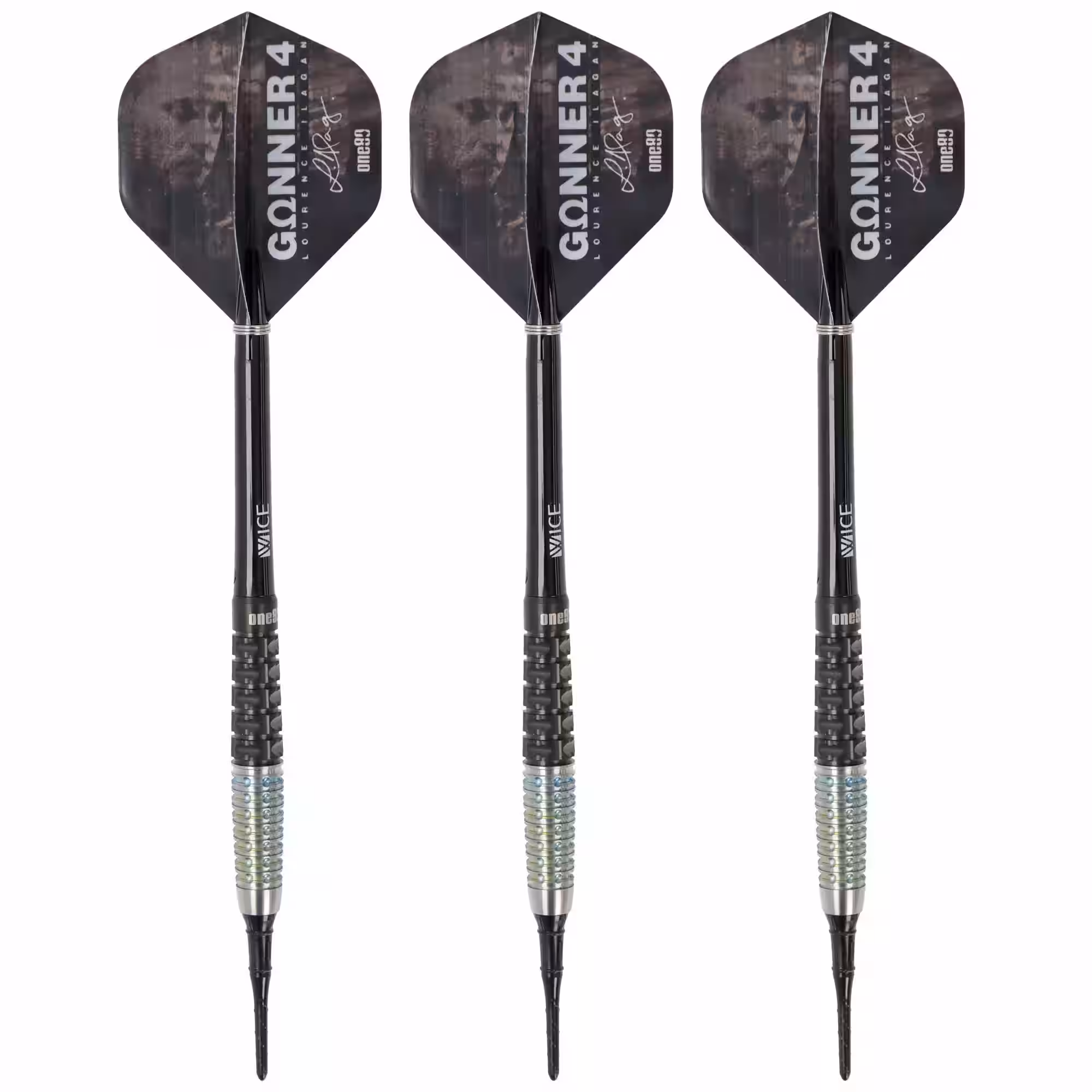 One80 Gunner 4 Softdart, schwarz und rainbow Beschichtung, 90% Tungsten kurz und kompakt, die Gunner 4 Softdarts stellen sich vor ✅ One80 Gunner 4 Laurence Ilagan Softdarts ✅ Barrel mit extrem guten Grip Eigenschaften ! ✅ in den folgenden Gewichten erhältlich: 22 Gramm Barrel only ✅ schwarz und rainbow Beschichtung mit silbernen Highlights und One80 Logo eingraviert ✅ 90% Tungsten Der One80 Gunner 4 Softdart ist die perfekte Wahl für ambitionierte Dartspieler, die Wert auf Qualität, Stil und Präzision legen. Dieses Premium-Dartset überzeugt durch seine hochwertige Verarbeitung, moderne Optik und die sorgfältig ausgewählten Materialien. Mit einer beeindruckenden schwarze und rainbow Beschichtung, silbernen Highlights und dem eingravierten One80-Logo vereint der Gunner 4 Funktionalität mit ästhetischer Eleganz. Hochwertige Materialien und Gewichtsstarke Ausführung Die One80 Gunner 4 Darts bestehen aus 90% Tungsten, einem Material, das für seine hohe Dichte und Langlebigkeit bekannt ist. Durch den hohen Wolframanteil ermöglicht der Dart eine schlanke Form, die ideal für enge Gruppierungen auf dem Dartboard ist. Diese Softdarts sind in der schweren Gewichtsvarianten erhältlich, sodass Sie den Dart wählen können, der perfekt zu Ihrem Wurfstil passt: 22 Gramm – der schwere Klassiker, ideal für eine Vielzahl von Spielstilen. One80 Gunner 4 Softdart – Präzision und Eleganz vereint Das Design des One80 Gunner 4 ist ein echter Hingucker. Die schwarze-Beschichtung verleiht dem Dartset eine warme, luxuriöse Optik, während die regenbogen und silbernen Highlights gezielt Akzente setzen. Diese optischen Details betonen nicht nur die Exklusivität des Produkts, sondern erleichtern auch die Orientierung am Barrel – besonders hilfreich für Spieler, die eine präzise Fingerplatzierung bevorzugen. Das eingravierte One80-Logo zeugt von der hohen Qualität und dem Markennamen, der in der Dartwelt für Exzellenz steht. Die Liebe zum Detail und die durchdachte Verarbeitung machen diese Darts zu einem Highlight in jedem Dartkoffer. Einzigartiger, starker Grip für maximale Kontrolle Eines der herausragendsten Merkmale der One80 Gunner 4 Softdarts ist der innovative Griff. Der Barrel ist überwiegend mit einem Ringgrip versehen, der sich durch seine gleichmäßigen Einkerbungen auszeichnet und für eine stabile und rutschfeste Handhabung sorgt. Dieser Klassiker unter den Gripmustern bietet eine hervorragende Kontrolle und ist besonders für Spieler geeignet, die einen verlässlichen Halt bevorzugen. Zusätzlich wurde im Bereich der silber belassenen Fläche ein völlig neuer Spikegrip integriert. Dieser Griff ist einzigartig in seiner Struktur und sorgt für ein unvergleichliches Spielgefühl. Er bietet nicht nur einen festen Halt, sondern ermöglicht auch subtile Anpassungen während des Wurfs, was besonders für Spieler von Vorteil ist, die nach Perfektion streben. Die Kombination aus Ring- und Spikegrip macht den Gunner 4 zu einem Dart, der sich sowohl für Anfänger als auch für erfahrene Spieler eignet. LOURENCE ILAGAN Wenn Langlebigkeit der wahre Maßstab für Größe ist, dann ist Lourence „The Gunner“ Ilagan der Beweis dafür. Viele gute Dartspieler kommen und gehen – die Besten werden mit der besten Ausrüstung immer besser! Dieses neue Gunner-Modell ist mit neuen Gips ausgestattet und der Barrelflug ist dank perfekter Gewichtsverteilung sehr stabil. Das neueste Design des Gunner 4 ist auf direkte und kontinuierliche Zusammenarbeit mit Lourence zurückzuführen. Es war für seine jüngsten und anhaltenden Erfolge bei nationalen und internationalen Turnieren verantwortlich und könnte der Schlüssel zu Ihrem Erfolg sein! Lieferumfang Das One80 Gunner 4 Dartset wird mit allem geliefert, was Sie für ein erstklassiges Spielerlebnis benötigen: 3 Barrels – die präzisionsgefertigten Herzstücke des Sets. 3 Flights – für eine stabile und zuverlässige Flugbahn. 6 Shafts – in zwei unterschiedlichen Längen, um individuelle Anpassungen zu ermöglichen. Dieses umfangreiche Set stellt sicher, dass Sie sofort loslegen können, ohne zusätzliches Zubehör kaufen zu müssen. Die hochwertigen Komponenten garantieren eine lange Lebensdauer und eine konstante Leistung auf höchstem Niveau. Für jeden Spieler geeignet Ob Sie ein erfahrener Turnierspieler sind oder gerade erst in die Welt des Darts einsteigen – der One80 Gunner 4 Softdart bietet alles, was Sie brauchen, um Ihr Spiel zu verbessern. Dank der hochwertigen Materialien, der vielseitigen Gewichtsoptionen und des innovativen Grips können Sie sicher sein, dass dieser Dart Ihren individuellen Bedürfnissen gerecht wird. Fazit Mit dem One80 Gunner 4 Softdart entscheiden Sie sich für ein Dartset, das höchste Ansprüche an Qualität, Design und Funktionalität erfüllt. Dieses Set ist nicht nur ein Werkzeug für den Sieg, sondern auch ein Statement für Stil und Präzision. Bestellen Sie jetzt und erleben Sie den Unterschied, den ein hochwertiger Dart in Ihrem Spiel ausmachen kann. Wählen Sie Ihr Gewicht, greifen Sie zu den One80 Gunner 4 Darts – und werfen Sie sich an die Spitze! Barrel Gewicht und Abmessungen Gewicht Länge Durchmesser 22 Gramm: 45,1mm max. 7,4mm Technische Daten Material: 90% Tungsten Typ: LOURENCE ILAGAN Gunner 4 Der Barrel only wiegt bereits schwere 22 Gramm, mit Zubehör wiegt der Softdart Komplettpfeil ca. 24,05 Gramm d.h. nicht Ligakonfirm?