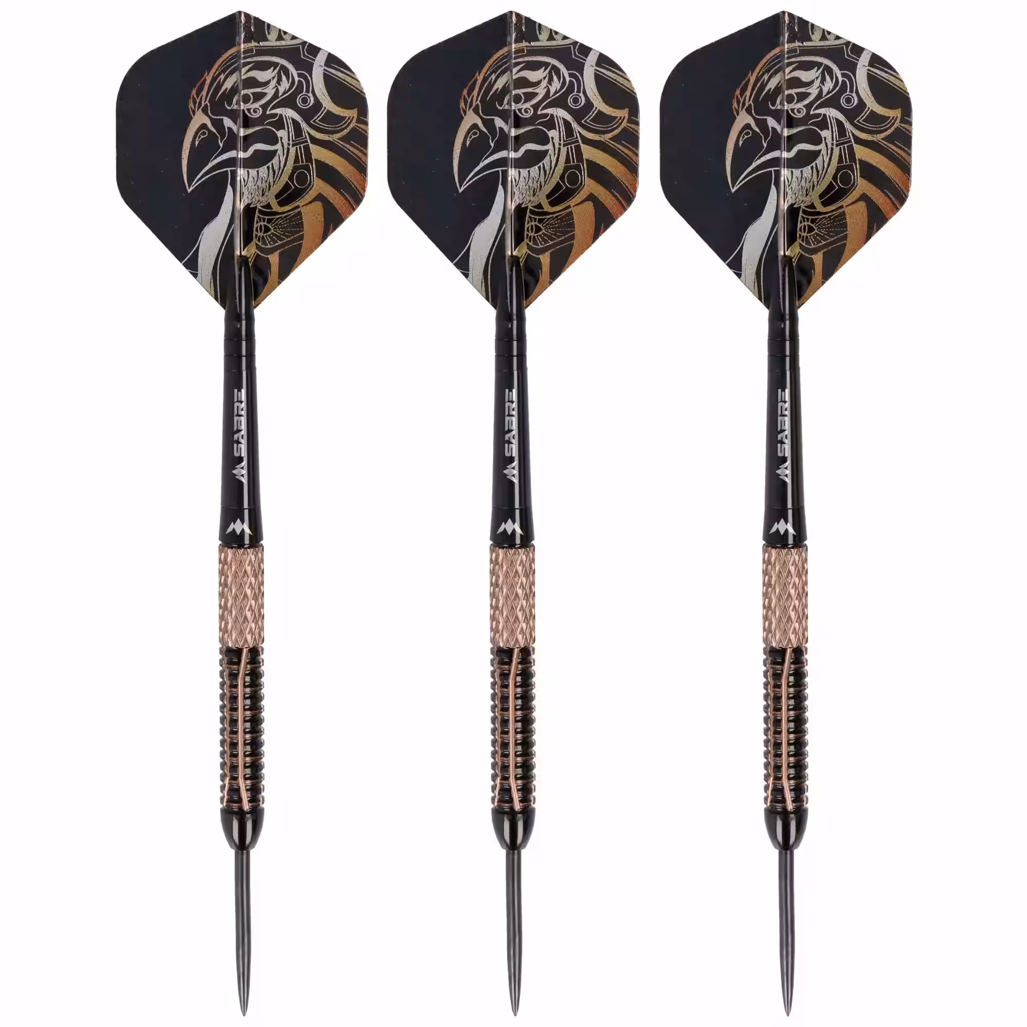 Mission Horus Steeldart, 97,5% Tungsten, schwarz bronze kurz und kompakt, die Horus Steeldarts stellen sich vor ✅ Horus Steeldarts von Mission! ✅ bitte das gewünschte Gewicht bei den Varianten auswählen! ✅ erhältlich in den folgenden Gewichten: 21 Gramm, 23 Gramm, 25 Gramm ✅ ultrastarkes Material – 97,5% Tungsten! ✅ schwarze PVD und bronzefarbene Elektrobeschichtung des Barrels! ✅ hochwertige Verarbeitung, gewohnt gute Qualität von Mission! Wenn Du auf der Suche nach einem Dart bist, der Design, Qualität und Performance perfekt miteinander vereint, dann ist der Mission Horus Steeldart genau die richtige Wahl für Dich. Mit einem Wolframanteil von satten 97,5 % gehört dieser Dart zur absoluten Spitzenklasse und erfüllt selbst die höchsten Ansprüche ambitionierter Spieler. Inspiriert vom ägyptischen Gott des Himmels – Horus – bringt dieser Dart nicht nur erstklassige Eigenschaften mit, sondern auch eine ganz besondere Symbolkraft: Stärke, Präzision und Kontrolle. Edles Design in Schwarz und Bronze Schon auf den ersten Blick fällt das außergewöhnliche Erscheinungsbild der Mission Horus Darts auf. Die Barrels sind mit einer schwarzen PVD-Beschichtung sowie einer bronzefarbenen galvanischen Veredelung versehen. Das sorgt nicht nur für eine edle Optik, sondern schützt den Dart zusätzlich vor Abnutzung und macht ihn langlebig. Die Farbkombination aus Schwarz und Bronze wirkt elegant und kraftvoll zugleich – ein echter Hingucker auf jedem Dartboard. Präzision durch hochwertige Barrel-Verarbeitung Die Mission Horus Steeldarts sind bis ins kleinste Detail durchdacht. Der vordere Teil des Barrels ist mit radialen Rillen und horizontalen Fräsungen versehen, die Dir optimalen Halt bieten und für einen gleichmäßigen Wurf sorgen. Diese Struktur verläuft harmonisch in eine glatte Rundung und schließlich in die schwarze Stahlspitze, die sich sauber ins Board setzt. Im mittleren Bereich des Barrels findest Du präzise gefräste Einschnitte, die für zusätzlichen Grip sorgen und Dir dabei helfen, Deine Finger immer an der gleichen Stelle zu positionieren. Dadurch wird Deine Wurfbewegung wiederholbarer und sicherer. Der hintere Abschnitt verjüngt sich zu einem glatten Bereich, auf dem das Mission-Logo per Lasergravur angebracht ist – ein stilvolles Detail, das gleichzeitig die Exklusivität dieses Luxus-Darts unterstreicht. Mission Horus Steeldart – 97,5% Tungsten, schwarze PVD-Beschichtung und bronzene Elektrobeschichtung Ein besonderes Highlight dieser Darts sind die verschiedenen Gripzonen. Je nachdem, wie Du Deinen Dart hältst, findest Du immer den passenden Halt. Das macht den Mission Horus nicht nur für erfahrene Spieler interessant, sondern auch für ambitionierte Einsteiger, die Wert auf Kontrolle und gleichmäßige Würfe legen. Egal ob Du lieber einen intensiven Grip bevorzugst oder eine glattere Oberfläche schätzt – dieser Dart bietet Dir beides. Exklusive Ausstattung inklusive Damit Du direkt loslegen kannst, wird der Mission Horus Steeldart mit hochwertigem Zubehör geliefert: Mission Sabre Schäfte für eine optimale Balance und Stabilität Mission 100 Micron Flights, die für einen stabilen Flug sorgen Barrels mit unterschiedlichen Griparten und Gripzonen für maximale Vielseitigkeit Alles, was Du brauchst, ist im Set enthalten. So kannst Du die Darts sofort ausprobieren und Dein Spiel auf ein neues Level bringen. Erhältliche Gewichte – finde Dein perfektes Setup Jeder Spieler hat seinen eigenen Stil – und genau darauf ist der Mission Horus Steeldart abgestimmt. Deshalb kannst Du zwischen drei verschiedenen Gewichten wählen: 21 Gramm – ideal, wenn Du einen leichteren Dart bevorzugst und Wert auf schnelle Würfe legst 23 Gramm – die perfekte Balance zwischen Kontrolle und Geschwindigkeit 25 Gramm – für Spieler, die einen etwas schwereren Dart schätzen und dadurch zusätzliche Stabilität im Wurf erhalten Bitte wähle bei der Bestellung das Gewicht aus, das am besten zu Deinem Spielstil passt. So stellst Du sicher, dass Du den optimalen Dart für Dein persönliches Spielgefühl erhältst. Hochwertige Qualität – typisch Mission Die Marke Mission steht seit Jahren für herausragende Qualität im Dartsport. Auch beim Horus Steeldart kannst Du Dich auf die gewohnt hohe Verarbeitungsqualität verlassen. Jeder Barrel wird mit modernster Technik gefertigt, präzise gefräst und auf höchste Haltbarkeit ausgelegt. So erhältst Du einen Dart, der nicht nur optisch überzeugt, sondern auch in Sachen Performance und Langlebigkeit neue Maßstäbe setzt. Fazit: Ein Dart für höchste Ansprüche Der Mission Horus Steeldart ist weit mehr als nur ein Sportgerät – er ist ein Statement. Inspiriert vom ägyptischen Gott des Himmels, steht er für Präzision, Stärke und Eleganz. Mit seinem edlen Design, der außergewöhnlich hohen Materialqualität und den cleveren Gripzonen ist er ein Dart, der Dich bei jedem Wurf unterstützt und Dir ein unvergleichliches Spielgefühl gibt. Ob Du ambitionierter Hobbyspieler bist oder regelmäßig Turniere spielst – mit dem Mission Horus Steeldart erreichst Du neue Höhen und bringst Dein Spiel auf das nächste Level. Wähle einfach Dein gewünschtes Gewicht, lege los und erlebe, wie ein Dart der absoluten Spitzenklasse Dein Spiel verändern kann. Technische Daten Art: Steeltip Farbe: Schwarz, Bronze Material: 97,5% Tungsten