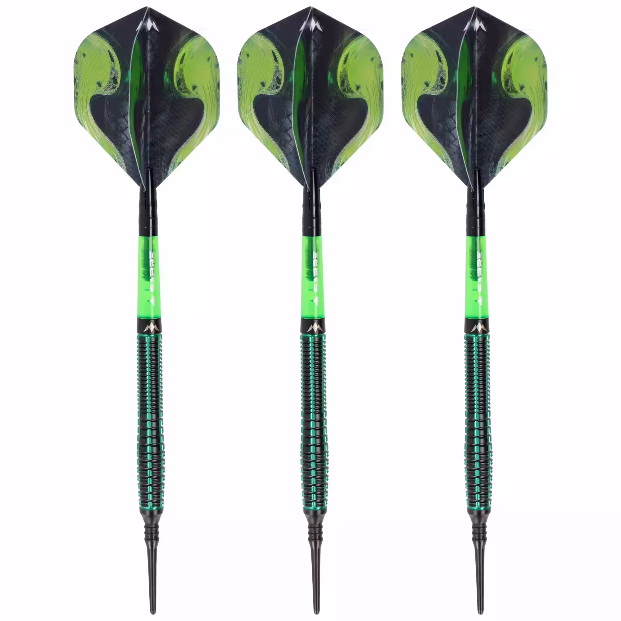 Mission Venom Softdart, schwarz grün, 90% Tungsten, 20 Gramm kurz und kompakt, die Venom Softdarts stellen sich vor ✅ Venom Softdarts von Mission! ✅ Farbe Schwarz & Grün ✅ Gewicht 20 Gramm ✅ schwarze PVD-Beschichtung und grüner galvanisierten Beschichtung ✅ Barrel verfügt über radiale Rillen und horizontalen Fräsungen für einen optimalen Grip! ✅ inklusive Mission Sabre Schäfte und Mission Venom Flights Erobere die Dartwelt mit dem Mission Venom Softdart – einem Dart, der nicht nur durch sein Design, sondern vor allem durch seine Qualität überzeugt. Wenn Du nach einem Dart suchst, der Dich auf dem Weg zum nächsten Highscore begleitet und dabei auch optisch Akzente setzt, dann bist Du hier genau richtig. Mit 90 % Tungsten, einer beeindruckenden Verarbeitung und einem markanten Look in Schwarz und Grün bringt Dir der Venom alles, was Du für Dein nächstes Spiel brauchst. Design, das auffällt Schon beim ersten Blick wird klar: Der Mission Venom ist kein gewöhnlicher Dart. Die elegante Kombination aus einer schwarzen PVD-Beschichtung und der grünen galvanisierten Oberfläche macht ihn zu einem echten Hingucker an jedem Dartboard. Diese Farbkombination verleiht dem Dart eine dynamische und zugleich edle Ausstrahlung, die sofort ins Auge fällt. Am hinteren Ende des Barrels findest Du zudem das lasergravierte Mission-Logo – ein dezentes, aber stilvolles Detail, das für Qualität und Präzision steht. Mit dem Mission Venom setzt Du nicht nur auf Leistung, sondern auch auf einen Look, der Eindruck macht. Mission Venom Softdart 20 Gramm – Präzision, Leistung und Stil für Dein Spiel Bei einem guten Dart kommt es auf das Material an – und hier macht der Mission Venom keine Kompromisse. Mit einem Barrel aus 90 % Tungsten (Wolfram) spielst Du mit einem Material, das in der Profi-Welt absoluter Standard ist. Warum? Tungsten ist extrem dicht, sodass der Barrel schlank bleibt, auch wenn das Gewicht bei 20 Gramm liegt. Das bringt Dir entscheidende Vorteile: Deine Darts lassen sich enger gruppieren, Du triffst präziser und verschaffst Dir damit einen echten Vorteil im Spiel. Gleichzeitig sorgt die widerstandsfähige Beschichtung dafür, dass Dein Dart auch nach vielen Spielen noch aussieht wie neu. Maximale Kontrolle dank durchdachtem Grip Wie ein Dart in Deiner Hand liegt, kann über Sieg oder Niederlage entscheiden. Genau deshalb wurde beim Mission Venom besonders viel Wert auf den Grip gelegt. Der Barrel ist mit radialen Rillen ausgestattet, die Dir jederzeit einen sicheren Halt geben. Zusätzlich sorgen horizontale Fräsungen für noch mehr Kontrolle und ein differenziertes Griffgefühl. Der Aufbau ist clever gestaltet: Hinten gerade für eine stabile Führung, vorne eine glatte Bullnose, die sich sanft zur Spitze hin verjüngt. Dadurch kannst Du den Dart genau so greifen, wie es zu Deinem Wurfstil passt – egal, ob Du lieber vorne, mittig oder weiter hinten greifst. Du spürst bei jedem Wurf: Hier steckt durchdachtes Design dahinter, das Dir hilft, Dein Spiel zu verbessern. Perfekt ausgewogen – für konstante Würfe Mit seinen 20 Gramm bietet Dir der Mission Venom die perfekte Balance zwischen Gewicht und Handhabung. Er liegt stabil in der Luft, ohne dabei schwerfällig zu wirken. Jeder Wurf fühlt sich kontrolliert an, egal ob Du auf hohe Scores gehst oder präzise auf Doppel und Triple zielen möchtest. Das Ergebnis: konstante Flugbahnen, mehr Kontrolle, bessere Trefferquoten. So machst Du den nächsten Schritt in Deinem Spiel. Alles dabei für den sofortigen Start Mit dem Mission Venom bekommst Du nicht nur erstklassige Barrels, sondern auch eine rundum hochwertige Ausstattung: Mission Grip Lock Shafts: Diese Shafts halten Deine Flights sicher an Ort und Stelle. Dank Grip Lock-Technologie verrutscht hier nichts, auch bei intensiven Spielen. Mission 100 Micron Flights: Passend zum Design in Schwarz und Grün Electro liefern diese Flights die perfekte Kombination aus Haltbarkeit und Stabilität. Mit ihrer 100-Mikron-Stärke unterstützen sie eine gleichmäßige Flugbahn – ideal für Dein präzises Spiel. Alles, was Du brauchst, ist im Set enthalten. Du kannst direkt loslegen. Für wen ist der Venom Dart gemacht? Der Mission Venom Softdart richtet sich an Dich, wenn Du Dein Spiel aufs nächste Level bringen willst – egal, ob Du Hobbyspieler bist oder schon regelmäßig Turniere spielst. Besonders dann, wenn Du Wert auf schlanke Barrels, präzise Würfe und ein stylisches Design legst, wirst Du diesen Dart lieben. Aber auch, wenn Du gerade erst damit beginnst, Darts für Dich zu entdecken: Mit dem Mission Venom startest Du direkt mit hochwertigem Equipment. Keine Kompromisse – von Anfang an. Fazit: Mission Venom – Dein Dart für mehr Erfolg am Board Der Mission Venom Softdart ist mehr als nur ein Sportgerät. Er ist Dein Begleiter auf dem Weg zu höheren Scores, besseren Checkout-Quoten und vielleicht sogar zum Turniersieg. Mit 90 % Tungsten, innovativem Grip, durchdachtem Design und dem unverwechselbaren Schwarz-Grün-Look bist Du bestens ausgerüstet. Mach Schluss mit Kompromissen, steigere Deine Performance und zeige Deinen Gegnern, wer die Kontrolle über das Spiel hat. Technische Daten Art: Softtip Material: 90% Tungsten Farbe: Schwarz, Grün Gewicht: 20 Gramm