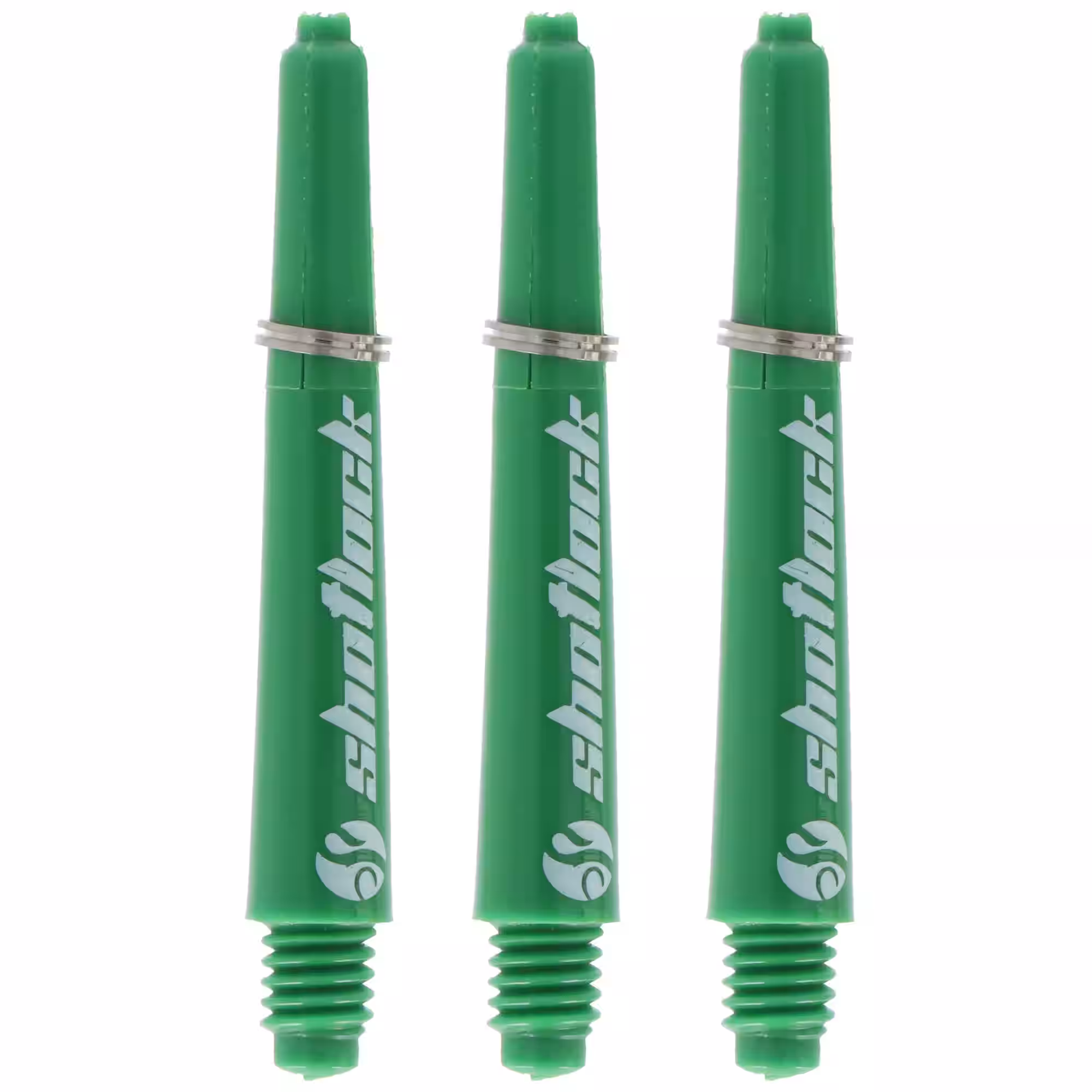 Shot Lock Shafts Nylon, Grün, Short kurz und kompakt, die Shot Lock Shafts stellen sich vor ✅ Grüner Dartschaft Nylon im 2BA Standardgewinde ✅ millionenfach bewährte, gleichbleibende Qualität in sehr guter Verarbeitung! ✅ Dartschaft 2Ba Durchmesser Schraubgewinde: ca. 0,4cm ✅ Softtip Gewinde 6 mm 2BA das Standardgewinde ✅ gewohnt hoher Nylon Standard ! Die neuen Shot Lock Nylon Dartschäfte – Robust und sicher im Griff Optimieren auch Du Dein Dart-Setup mit den Shot Lock Nylon Dartschäften. Sie sind für Langlebigkeit und Präzision entwickelt worden. Die Dartschäfte aus dem hochwertigem Nylon bieten Dir Stabilität und Flexibilität und halten auch intensivem Spiel stand. Egal ob Freizeitspieler oder Profi-Dartspieler, diese Schäfte bieten die nötige Zuverlässigkeit für konstante Leistungen. Die Eigenschaften der Nylon Shafts Stark und langlebig: Die Schäfte aus hochwertigem Nylon sind leicht und dennoch robust und bieten Euch eine dauerhafte Leistung. Shot Lock Ringe inklusive: Die Shot Lock Ringe fixieren den Flight sicher und verhindern ein Ablösen während des Spiels. Universell kompatibel: Dank Standard-2BA-Gewinde für die meisten Darts geeignet. Preisgünstige Qualität: Eine preisgünstige Option ohne Kompromisse bei der Leistung – perfekt für Anfänger und Fortgeschrittene. Viper Dart Flight & Shaft, moulded All-In-One System, gelb Gesamtlänge 73mm Perfekt für alle Spielstile Mit ihrer robusten Konstruktion und dem sicheren Sitz sind die Shot Lock Nylon Dartschäfte eine ausgezeichnete Wahl für Dartspieler aller Spielstärken. Die mitgelieferten Shot Lock-Ringe sorgen für einen festen Sitz zwischen Flight und Schaft und verhindern so ein Ablösen des Flights beim Werfen. Optimiere auch Du Deine Dartspiele Bringen Dein Dartspiel auf das nächste Level mit den zuverlässigen und günstigen Schäften von Shot. Erhältlich in verschiedenen Farben und Größen, bieten sie individuelle Anpassungsmöglichkeiten für Deinen Dartstil. Hol Dir noch heute Deine neuen Schäfte und erleben den Unterschied! Shot Lock Shafts Die verfügbare Größen: Kurz, Mittel und Lang Verfügbare Farben: pink, gelb, grün, Grün, rot, schwarz, weiß Technische Daten Material: Nylon Stärke: Standard bis robust Farbe: Grün System: 2BA Gewinde Gewicht: ca. 1,0 Gramm Nylon Schäfte sind immer gut zu den Stoff-Flights passend und werden gerne zusammen mit den meist silbernen Kronen eingesetzt. Der Schaft der Profis. Alte Darthasen schätzen die Qualität und Belastbarkeit, dieser Dartschäfte aus Nylon, sie sehen vielleicht nicht so trendig aus wie moderne andere Schäfte, aber sie sind bewährt, extrem langlebig und formstabil. Deshalb gehören sie zu den Favoriten der Schäfte. Inhalt der Lieferung: 3 Schäfte (Abbildung ähnlich, kann je nach Fertigungscharge farblich heller oder dunkler abweichen, teilweise abgebildete Teile und Darts, Flights, Spitzen, Dartboards nicht enthalten)