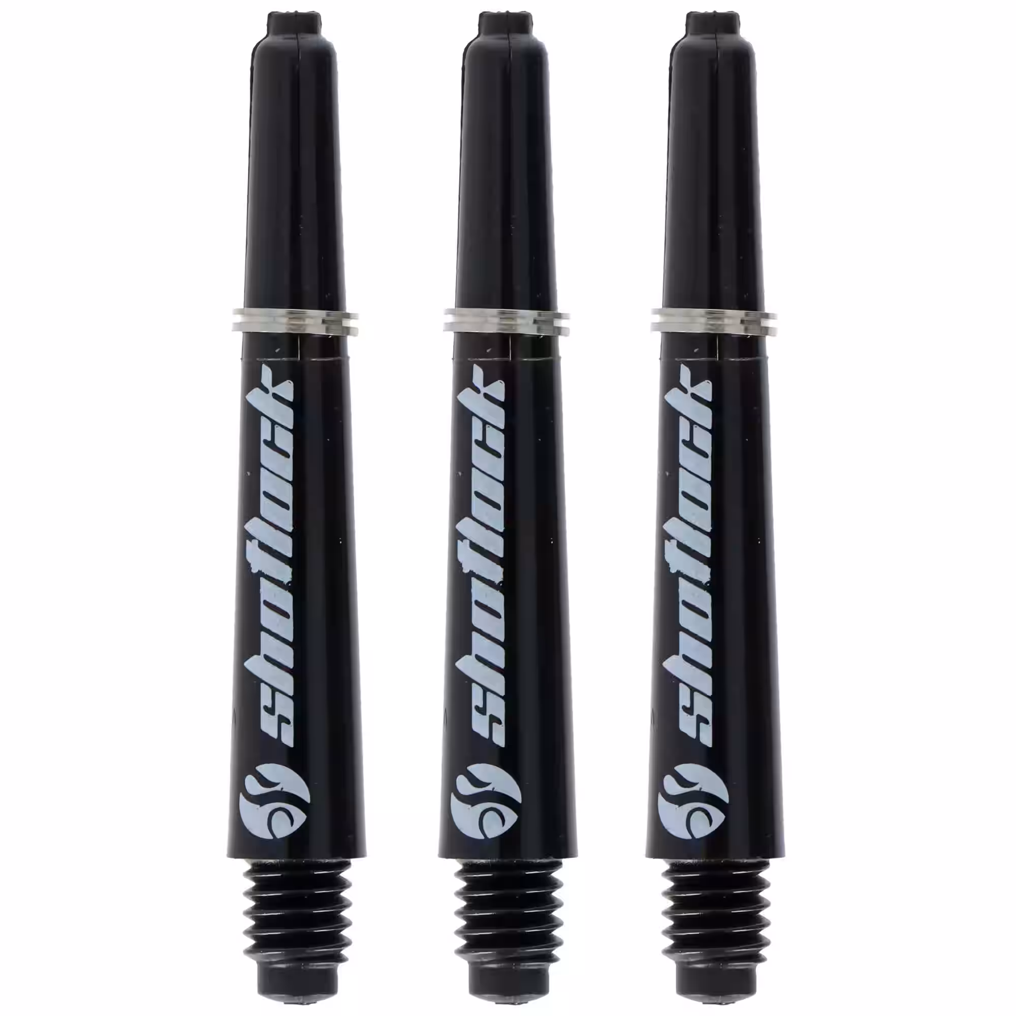 Shot Lock Shafts Nylon, Schwarz, Short kurz und kompakt, die Shot Lock Shafts stellen sich vor ✅ schwarzer Dartschaft Nylon im 2BA Standardgewinde ✅ millionenfach bewährte, gleichbleibende Qualität in sehr guter Verarbeitung! ✅ Dartschaft 2Ba Durchmesser Schraubgewinde: ca. 0,4cm ✅ Softtip Gewinde 6 mm 2BA das Standardgewinde ✅ gewohnt hoher Nylon Standard ! Die neuen Shot Lock Nylon Dartschäfte – Robust und sicher im Griff Optimieren auch Du Dein Dart-Setup mit den Shot Lock Nylon Dartschäften. Sie sind für Langlebigkeit und Präzision entwickelt worden. Die Dartschäfte aus dem hochwertigem Nylon bieten Dir Stabilität und Flexibilität und halten auch intensivem Spiel stand. Egal ob Freizeitspieler oder Profi-Dartspieler, diese Schäfte bieten die nötige Zuverlässigkeit für konstante Leistungen. Die Eigenschaften der Nylon Shafts Stark und langlebig: Die Schäfte aus hochwertigem Nylon sind leicht und dennoch robust und bieten Euch eine dauerhafte Leistung. Shot Lock Ringe inklusive: Die Shot Lock Ringe fixieren den Flight sicher und verhindern ein Ablösen während des Spiels. Universell kompatibel: Dank Standard-2BA-Gewinde für die meisten Darts geeignet. Preisgünstige Qualität: Eine preisgünstige Option ohne Kompromisse bei der Leistung – perfekt für Anfänger und Fortgeschrittene. Viper Dart Flight & Shaft, moulded All-In-One System, gelb Gesamtlänge 73mm Perfekt für alle Spielstile Mit ihrer robusten Konstruktion und dem sicheren Sitz sind die Shot Lock Nylon Dartschäfte eine ausgezeichnete Wahl für Dartspieler aller Spielstärken. Die mitgelieferten Shot Lock-Ringe sorgen für einen festen Sitz zwischen Flight und Schaft und verhindern so ein Ablösen des Flights beim Werfen. Optimiere auch Du Deine Dartspiele Bringen Dein Dartspiel auf das nächste Level mit den zuverlässigen und günstigen Schäften von Shot. Erhältlich in verschiedenen Farben und Größen, bieten sie individuelle Anpassungsmöglichkeiten für Deinen Dartstil. Hol Dir noch heute Deine neuen Schäfte und erleben den Unterschied! Shot Lock Shafts Die verfügbare Größen: Kurz, Mittel und Lang Verfügbare Farben: pink, gelb, Schwarz, Schwarz, rot, schwarz, weiß Technische Daten Material: Nylon Stärke: Standard bis robust Farbe: Schwarz System: 2BA Gewinde Gewicht: ca. 1,0 Gramm Nylon Schäfte sind immer gut zu den Stoff-Flights passend und werden gerne zusammen mit den meist silbernen Kronen eingesetzt. Der Schaft der Profis. Alte Darthasen schätzen die Qualität und Belastbarkeit, dieser Dartschäfte aus Nylon, sie sehen vielleicht nicht so trendig aus wie moderne andere Schäfte, aber sie sind bewährt, extrem langlebig und formstabil. Deshalb gehören sie zu den Favoriten der Schäfte. Inhalt der Lieferung: 3 Schäfte (Abbildung ähnlich, kann je nach Fertigungscharge farblich heller oder dunkler abweichen, teilweise abgebildete Teile und Darts, Flights, Spitzen, Dartboards nicht enthalten)
