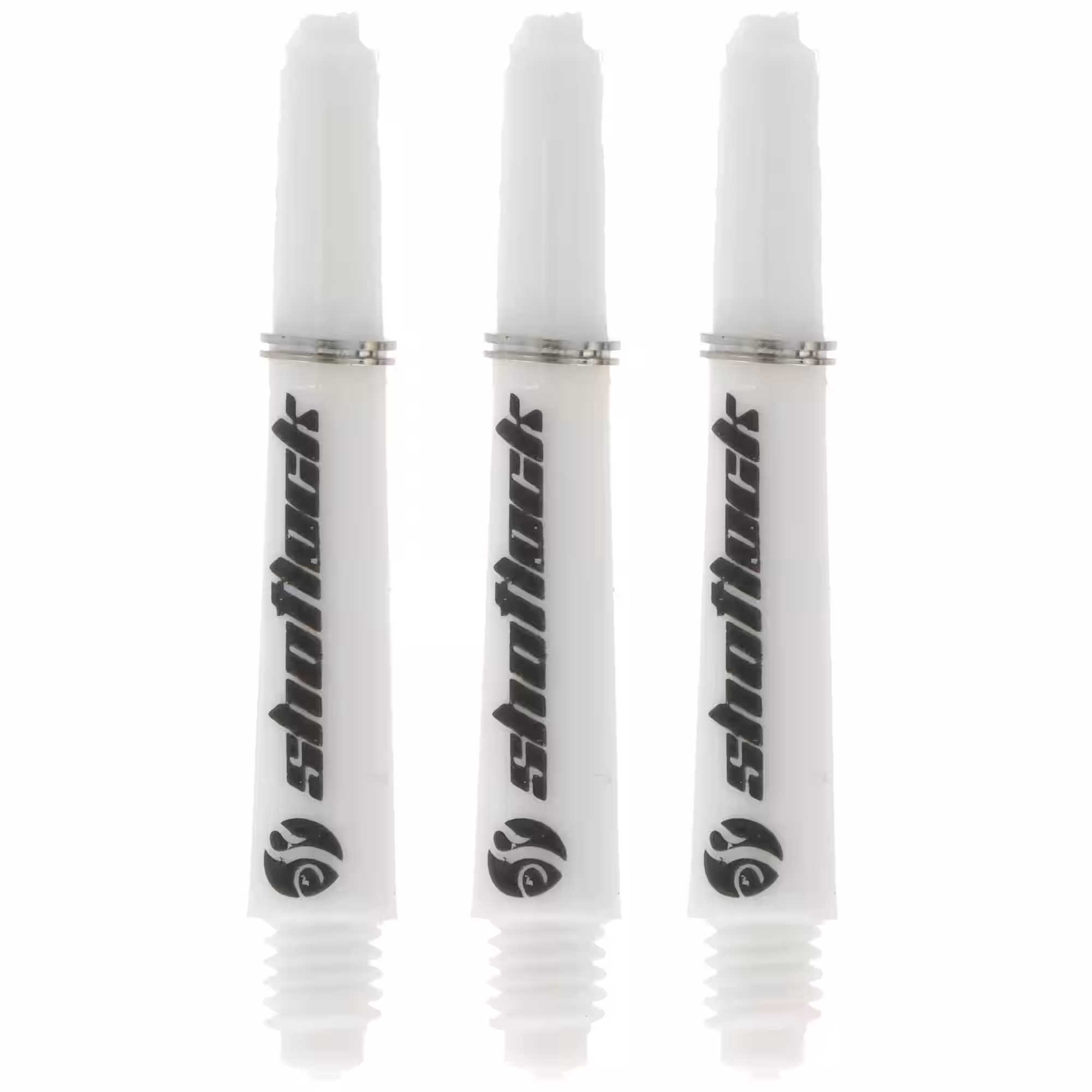Dart Shaft weiß in Nylon Qualität, short kurz und kompakt, unser Nylon Dartshaft Klassiker in der Neuaflage stellt sich vor ✅ weißer, weiß Dartschaft Nylon im 2BA Standardgewinde ✅ millionenfach bewährte, gleichbleibende Qualität in sehr guter Verarbeitung! ✅ Dartschaft 2Ba Durchmesser Schraubgewinde: ca. 0,4cm ✅ Softtip Gewinde 6 mm 2BA das Standardgewinde ✅ gewohnt hoher Nylon Standard ! ✅ Länge mit Gewinde: 40mm, Länge ohne Gewinde: 34mm ✅ Nylon in hochwertiger Verarbeitung ! Die neuen Shot Lock Nylon Dartschäfte – Robust und sicher im Griff Optimieren auch Du Dein Dart-Setup mit den Shot Lock Nylon Dartschäften. Sie sind für Langlebigkeit und Präzision entwickelt worden. Die Dartschäfte aus dem hochwertigem Nylon bieten Dir Stabilität und Flexibilität und halten auch intensivem Spiel stand. Egal ob Freizeitspieler oder Profi-Dartspieler, diese Schäfte bieten die nötige Zuverlässigkeit für konstante Leistungen. Die Eigenschaften der Nylon Shafts Stark und langlebig: Die Schäfte aus hochwertigem Nylon sind leicht und dennoch robust und bieten Euch eine dauerhafte Leistung. Shot Lock Ringe inklusive: Die Shot Lock Ringe fixieren den Flight sicher und verhindern ein Ablösen während des Spiels. Universell kompatibel: Dank Standard-2BA-Gewinde für die meisten Darts geeignet. Preisgünstige Qualität: Eine preisgünstige Option ohne Kompromisse bei der Leistung – perfekt für Anfänger und Fortgeschrittene. Perfekt für alle Spielstile Mit ihrer robusten Konstruktion und dem sicheren Sitz sind die Shot Lock Nylon Dartschäfte eine ausgezeichnete Wahl für Dartspieler aller Spielstärken. Die mitgelieferten Shot Lock-Ringe sorgen für einen festen Sitz zwischen Flight und Schaft und verhindern so ein Ablösen des Flights beim Werfen. Optimiere auch Du Deine Dartspiele Bringen Dein Dartspiel auf das nächste Level mit den zuverlässigen und günstigen Schäften von Shot. Erhältlich in verschiedenen Farben und Größen, bieten sie individuelle Anpassungsmöglichkeiten für Deinen Dartstil. Hol Dir noch heute Deine neuen Schäfte und erleben den Unterschied! Shot Shot Lock Shafts white, short Die verfügbare Größen: Kurz, Mittel und Lang Verfügbare Farben: weiß, Gelb, Grün, Blau, Rot, Schwarz, pink Technische Daten für die Nylon Dart Shaft Material: Nylon Stärke: Standard bis robust Farbe: weiß, eher weiß System: 2BA Gewinde Gewicht: ca. 0,75 Gramm Abmessungen: 34,3mm, ca. Länge 40mm mit Gewinde Nylon Schäfte sind immer gut zu den Stoff-Flights passend und werden gerne zusammen mit den meist silbernen Kronen eingesetzt. Der Schaft der Profis. Alte Darthasen schätzen die Qualität und Belastbarkeit, dieser Dartschäfte aus Nylon, sie sehen vielleicht nicht so trendig aus wie moderne andere Schäfte, aber sie sind bewährt, extrem langlebig und formstabil. Deshalb gehören sie zu den Favoriten der Schäfte. Unwahrscheinlich robuster Schaft in extra 40mm. Inhalt der Lieferung: 3 Schäfte, 4cm Gewicht ca. 0,75 Gramm (Abbildung ähnlich, kann je nach Fertigungscharge farblich heller oder dunkler abweichen, teilweise abgebildete Teile und Darts, Flights, Spitzen, Dartboards nicht enthalten)