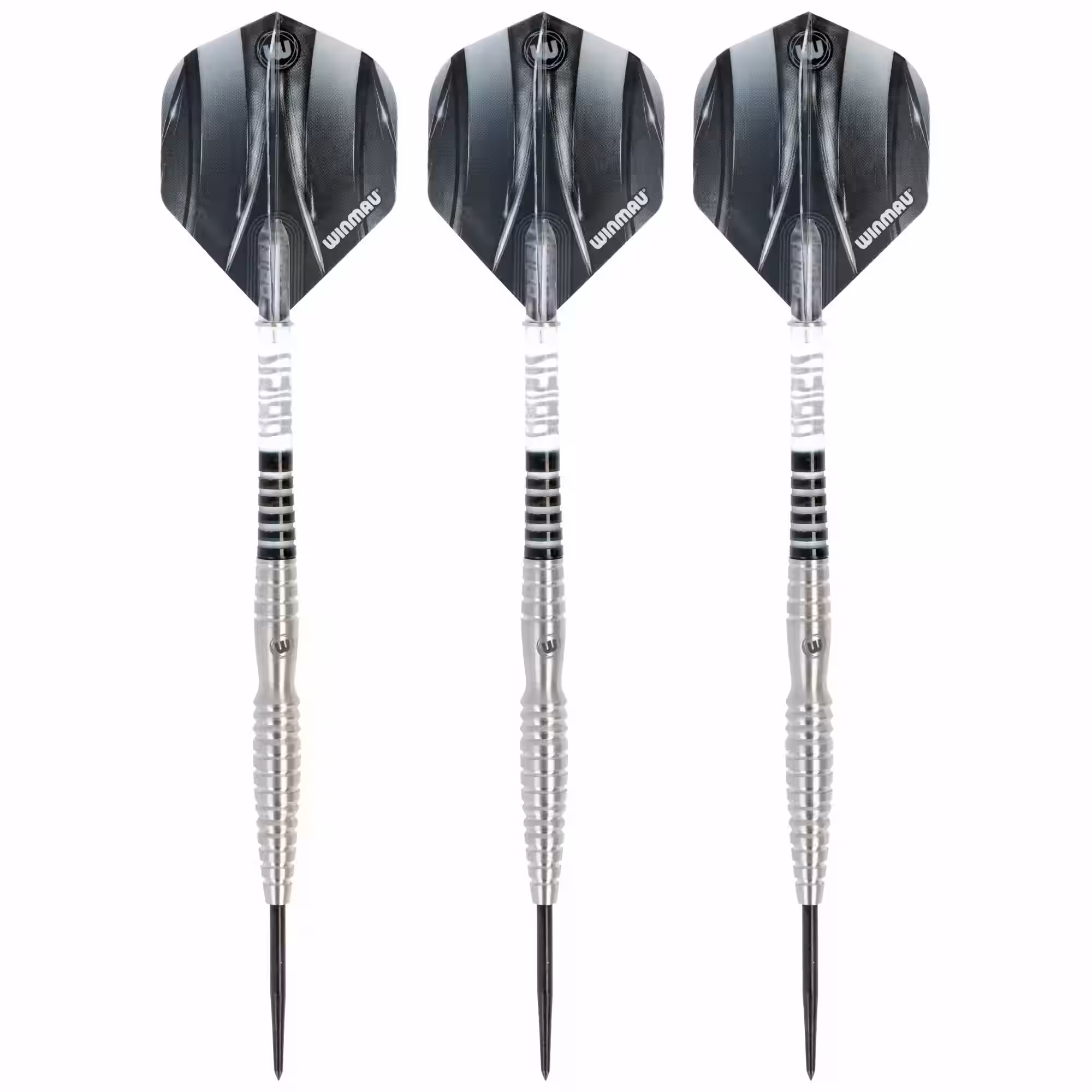 Winmau Sniper sliber Steeldart, 90% Tungsten, 22 Gramm kurz und kompakt, die Sniper Steeldarts stellen sich vor ✅ Winmau Sniper silver Edition Steeldarts ✅ Gewicht 23,85 Gramm, Barrel Gewicht ca. 22 Gramm ✅ silber, Barrel 90% Tungsten ✅ Sniper, das Shark Gripsystem mit mehreren Zonen! ✅ Dart Barrel mit silbernem Barrel Wenn es um hochwertiges Dart-Equipment geht, setzt Winmau seit Jahrzehnten Maßstäbe. Mit dem Winmau Sniper silver edition Steeldart präsentiert der renommierte Hersteller ein beeindruckendes Produkt, das speziell für Spieler entwickelt wurde, die auf der Suche nach maximaler Leistung, Präzision und Stil sind. Dieses Set kombiniert innovative Technologie, außergewöhnliche Griffigkeit und herausragendes Design, um jedem Wurf den perfekten Schwung zu verleihen. Technische Details und Spezifikationen Der Winmau Sniper silver edition Steeldart beeindruckt durch seine 90% Tungsten-Barrels, die für ein außergewöhnlich schlankes und präzises Design sorgen. Das Gesamtgewicht beträgt ca. 23,85 Gramm / Barrel only ca. 22,10 Gramm, wobei das Barrel alleine ein Gewicht von etwa 22 Gramm aufweist. Diese optimale Gewichtsbalance unterstützt ein stabiles Flugverhalten und ein hohes Maß an Kontrolle. Das Barreldesign ist einfarbig gehalten: Die Dartbarrel mit der silberen PVD Beschichtung verschmelzen zu einem einzigartigen, modernen Look, der sofort ins Auge sticht. Ergänzt wird das elegante Äußere durch eine raffinierte Kombination aus verschiedenen Gripzonen Details, die dem Dartset einen Hauch von Luxus verleihen. Winmau Sniper silver Edition Steeldart: Präzision und Stil in Perfektion Ein entscheidender Faktor für die außergewöhnliche Performance des Winmau Sniper silver edition ist das extravagante Gripsystem. Diese innovative Technologie bietet eine unübertroffene Griffigkeit und ermöglicht eine präzise Geschwindigkeitskontrolle, die in jeder Spielsituation überzeugt. Das System setzt auf mehrere Gripzonen, die gleichmäßigen Halt gewährleisten und dabei für verschiedene Wurfstile geeignet sind. Egal, ob Sie ein erfahrener Spieler oder Einsteiger sind – dieses Griffdesign unterstützt Sie dabei, jeden Wurf mit höchster Genauigkeit auszuführen. Der Fokus auf Wurfvielseitigkeit, Flugkonsistenz und gleichmäßigen Grip macht den Sniper silver edition Steeldart zur perfekten Wahl für Spieler, die ihre Technik verfeinern und auf das nächste Level bringen wollen. Hochwertiges Zubehör und Verarbeitung Das Set enthält alles, was Sie für ein sofortiges Spielerlebnis benötigen: 3 Sniper silver edition 90% Tungsten-Barrels 3 Prism Shafts 3 Prism Delta Flights Jedes Teil ist mit höchster Präzision gefertigt und spiegelt die gewohnt hohe Qualität von Winmau wider. Die Prism Delta Flights bieten nicht nur ein ansprechendes Design, sondern sorgen auch für eine ausgezeichnete Stabilität und Flugbahn. Die Prism Shafts zeichnen sich durch ihre Langlebigkeit und Leichtigkeit aus und sind optimal auf die Barrels abgestimmt. Darüber hinaus wird das gesamte Set in einer ansprechenden Verpackung geliefert, die sich auch ideal als Geschenk eignet. Ein unvergleichliches Spielerlebnis Der Schlüssel zu einem großartigen Spiel liegt in der Kombination von: Verschiedene Griffigkeit: Das innovative Gripsystem sorgt für eine zuverlässige Haptik, die auch bei langen Spielen nicht nachlässt. Wurfvielseitigkeit: Die sorgfältig durchdachte Gewichtsverteilung und das schlanke Barrel-Design ermöglichen individuelle Anpassungen an jeden Spielstil. Flugkonsistenz: Die Präzision der Barrels, kombiniert mit den hochwertigen Flights und Shafts, gewährleistet eine konstante Flugbahn und punktgenaue Landungen. Diese drei Eigenschaften machen den Winmau Sniper silver edition Steeldart zu einem unverzichtbaren Begleiter für Dart-Enthusiasten. Design und Ästhetik Das auffällige Barreldesign in silber ist mehr als nur ein optisches Highlight. Es spiegelt die technische Raffinesse wider, die in diesem Produkt steckt. Die PVD-Veredelung verleiht den Darts nicht nur eine luxuriöse Note, sondern schützt auch vor Abnutzung und sorgt für eine lange Lebensdauer (leider geht im Laufe der Zeit die Beschichtung etwas verloren und es kommt die silberne Farbe vom Tungsten Barrel zum Vorschein). Das Motto “Lassen Sie die richtigen Darts Sie wählen” trifft bei den Sniper silver edition Steeldarts den Nagel auf den Kopf. Sobald Sie diese Darts in der Hand halten, spüren Sie die Qualität und das durchdachte Design, das jedes Spiel zu einem besonderen Erlebnis macht. Warum Winmau? Winmau ist seit Jahren ein Synonym für erstklassiges Dart-Equipment. Mit dem Sniper silver edition Steeldart zeigt das Unternehmen einmal mehr, warum es zu den führenden Marken in der Dartwelt gehört. Jeder Aspekt des Produkts – von der Auswahl der Materialien über die Technologie bis hin zur Verpackung – ist darauf ausgelegt, Spielern das bestmögliche Erlebnis zu bieten. Fazit: Sniper für jeden Spieler Der Winmau Sniper silver edition Steeldart ist nicht nur ein weiteres Dartset, sondern ein echter Game-Changer. Das innovative Gripsystem, die hochwertigen Materialien und die durchdachten Designelemente machen dieses Set zu einem Muss für alle, die das Beste aus ihrem Spiel herausholen wollen. Mit seiner beeindruckenden Kombination aus Griffigkeit, Kontrolle und ästhetischem Design bietet der Sniper silver edition Steeldart von Winmau ein unvergleichliches Spielerlebnis. Egal, ob Sie ein erfahrener Spieler oder ein ambitionierter Einsteiger sind – dieses Set wird Sie begeistern. Greifen Sie zu und erleben Sie den Unterschied, den ein erstklassiger Dart machen kann! Technische Daten Material: 90% Tungsten Gewicht: 23,85 Gramm, Barrelgewicht ca. 22,1 Gramm Farbe: silber, PVD Grip: mehrere Gripzonen Abmessungen: Komplettpfeil 155mm, Barrel 51mm